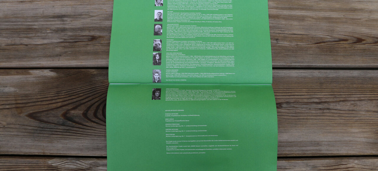 WIE WOLLEN WIR KÜNFTIG LERNEN? WIE SOLL DAS RÄUMLICHE UMFELD DAFÜR AUSSEHEN? Genau diese Fragestellungen an der Schnittstelle von Architektur und Pädagogik machen den Reiz dieser interdisziplinären Studienprojektarbeiten in unserem Master Studiengang Architektur in Spittal an der Drau aus. Ganz im Vordergrund steht dabei für die teilnehmenden Studierenden eine gewisse Form der „Aufarbeitung“ der eigenen, noch nicht so weit zurückliegenden, schulischen Ausbildung in Blickrichtung auf die gemeinsame Fragestellung zur Umsetzung der neuen pädagogischen Konzepte. Die Diskussionen über bewährte Referenzprojekte, wie sie beispielsweise von dem niederländischen Architekten Hermann Hertzberger konzipiert wurden, ließen die Erörterung von Raumqualität nicht zu kurz kommen. Die während dieses Projektes ermöglichten vielfältigen Einblicke durch Hospitieren an der gegenständlichen Neuen Mittelschule, Gespräche mit Schülern und Schülerinnen, sowie allen weiteren hier an diesem Prozess Beteiligten, haben ein gutes und adäquates Niveau für eine derartige Bearbeitung geboten. Die Broschüre „räumliche Umsetzung neuer pädagogischer Konzepte“ dokumentiert die Beschäftigung der Studierenden und SchülerInnen mit pädagogischer Architektur.