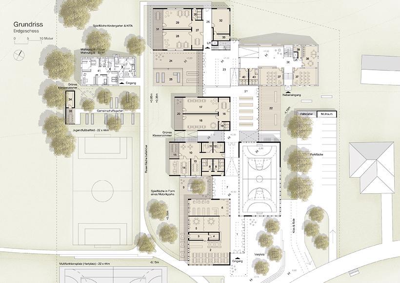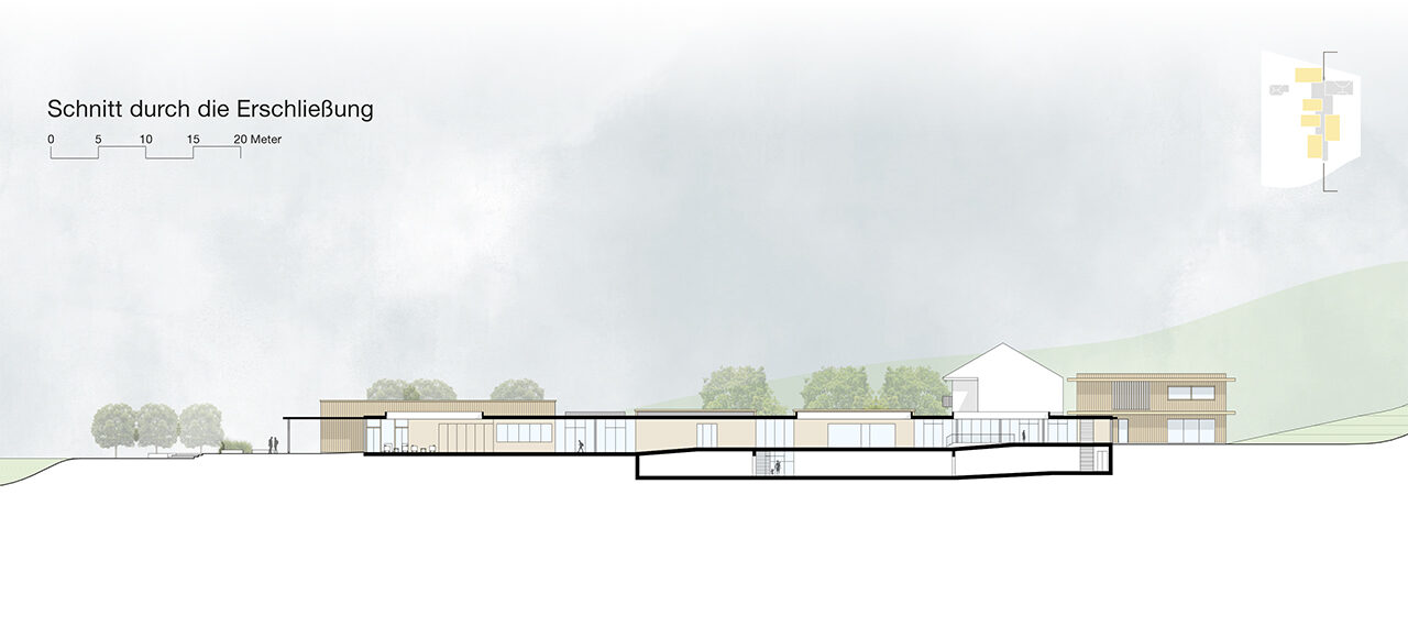 Im ersten Kapitel werden die Leser*innen schrittweise an das Thema „Bildung“ herangeführt. Dies erfolgt über bildungstheoretische und -architektonische Themen. Anschließend wird die Gemeinde Keutschach am See, mit besonderem Fokus auf das Ortszentrum sowie das Vereinswesen von Keutschach, näher analysiert. Diese Analyse ist zweckdienlich für das nachfolgende Konzept und den Entwurf. Die abschließenden Kapitel erläutern die neuen Anforderungen an den Bildungscampus und stellen das Ergebnis in Form eines Masterplans für das Ortszentrum sowie den Entwurf der baulichen Strukturen dar.